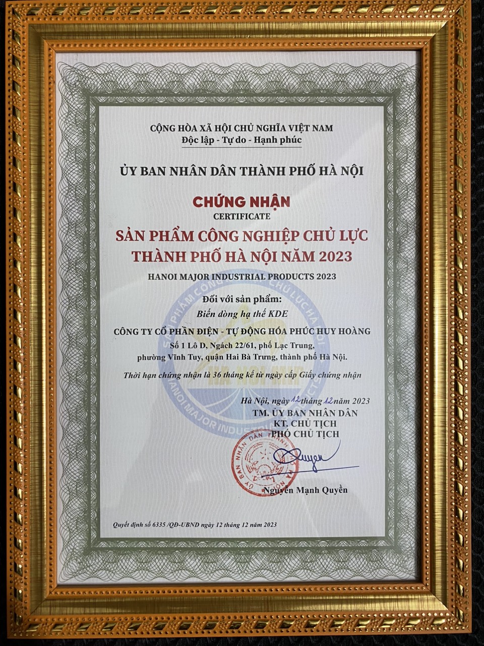 Biến Dòng Hạ thế KDE đã được trao tặng danh hiệu “Sản phẩm công nghiệp chủ lực của Thủ đô Hà Nội năm 2023”. Đây là một giải thưởng uy tín được trao cho các sản phẩm đã có những đóng góp quan trọng cho sự phát triển của kinh tế Hà Nội. Giải thưởng là một minh chứng cho chất lượng và sự sáng tạo của Biến Dòng Hạ thế KDE.