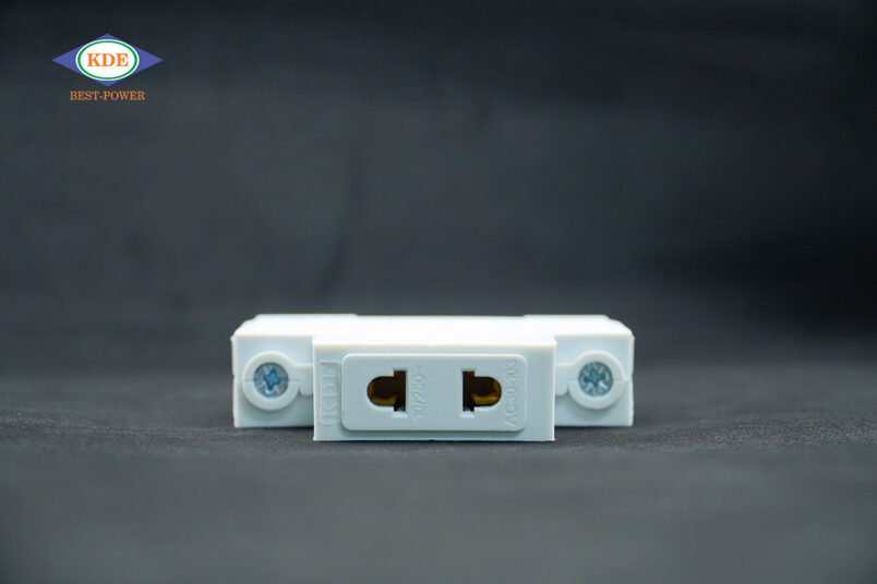 Ổ cắm 2 chấu gắn thanh ray tủ điện được chế tạo bằng nhựa PA6 chống cháy chịu nhiệt cao, chống va đập, cường độ tải dòng tối đa 10A, điện áp 250V. Có thể nói đây là dòng ổ cắm tiêu chuẩn được áp dụng phổ biến trong công nghiệp và nhà máy.